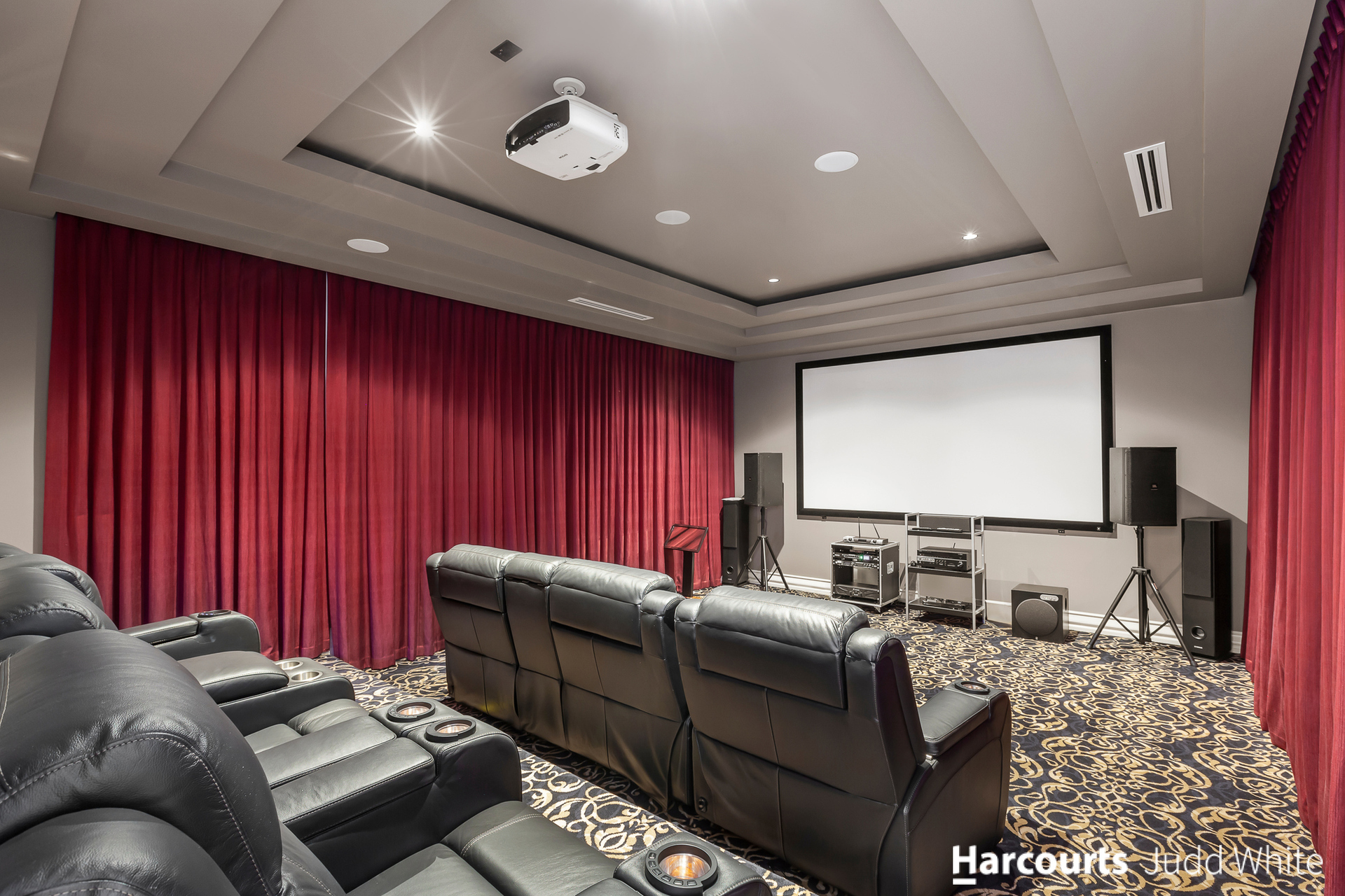 Adding yet further to the indulgent design, the home features an equipped theatre room, two rumpus rooms, recreation room with wet bar, spacious retreat, 2nd study plus an enclosed alfresco zone with timber paneled ceiling and skylight opening onto a covered spa and synthetic turf backyard.