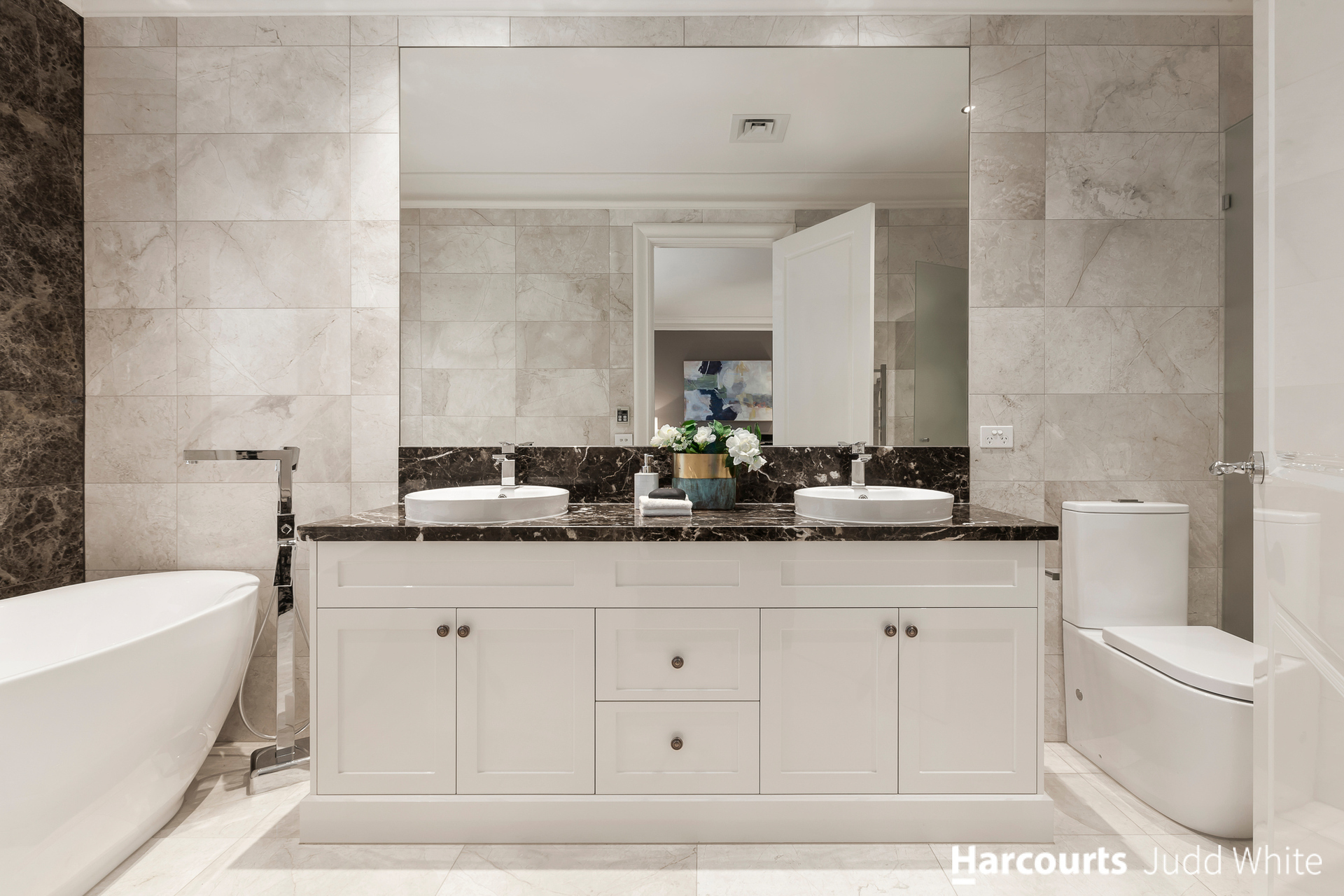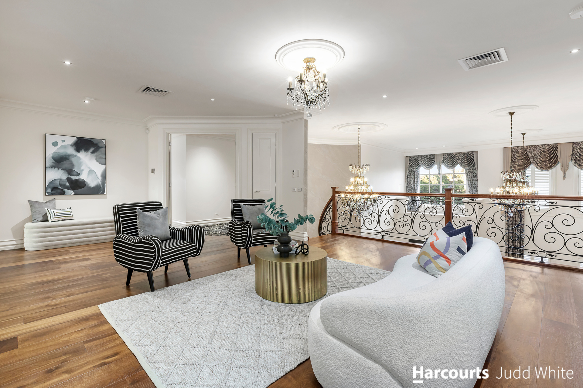 Finished to perfection with floor heating, central cooling and heating, ducted vacuum, alarm, video intercom, CCTV cameras, laundry chute, plantation shutters, plus two double garages with their own gated driveways.